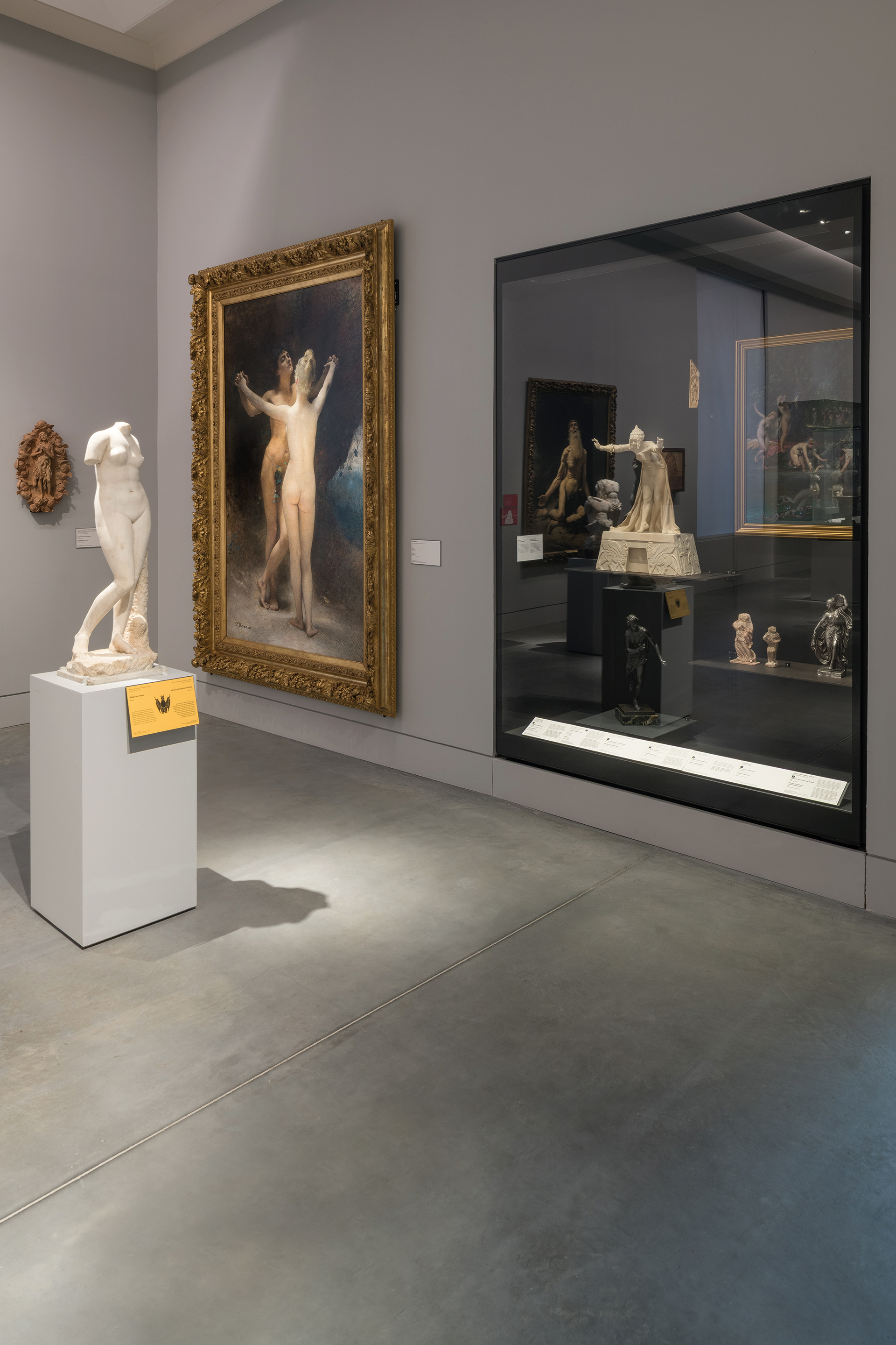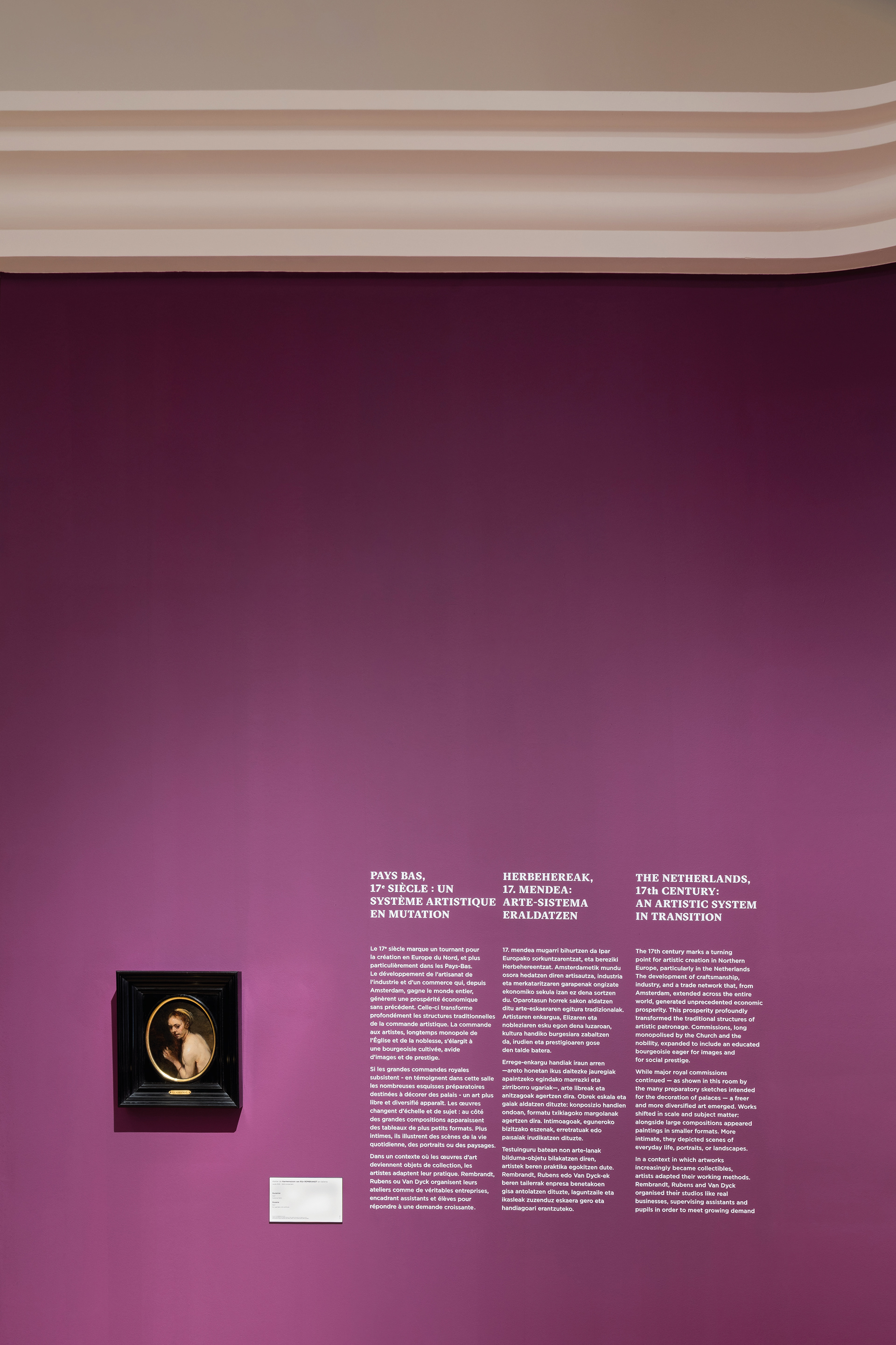 – les cartels « œuvres phares » adoptent une couleur framboise et sont accompagnés de dessins explicatifs.